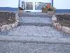 Treppenanlage aus Boss-Antik Blockstufen, Einfassung mit Bossapal Palisaden.