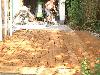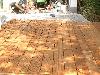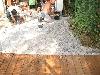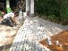 Bankirai-Holzdielen mit Granit-Pflaster kombiniert.
