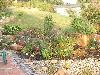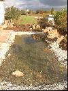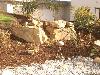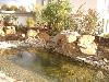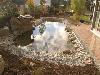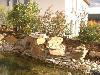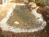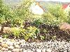 Teichanlage mit Bruchstein-Bachlauf, Folie wurde mit Oberrheinkörnung in verschiedenen Kornabstufungen abgedeckt und bepflanzt.