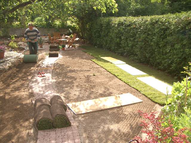 Untergrund wird zur Rollrasenverlegung leicht angewalzt