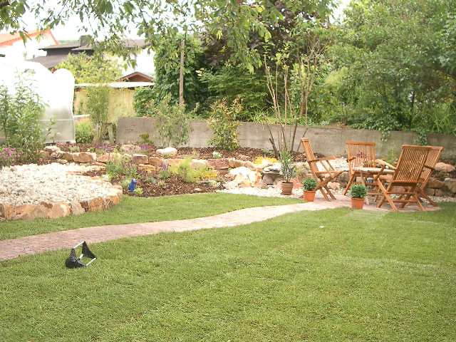 Fertige Gartenanlage nach unserem Eingriff!! Gehwegpflasterung mit Sitzgruppe