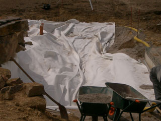 Teicharbeiten, Vließ Auslage zum Schutz der Folie